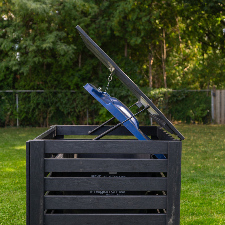 Our enclosures feature automotive-grade gas struts for smooth, powered lid operation, secured with stainless steel hardware to deliver maximum longevity against harsh outdoor elements. Thanks to its exceptional durability, it can be easily cleaned with everything from a rag to a pressure washer.